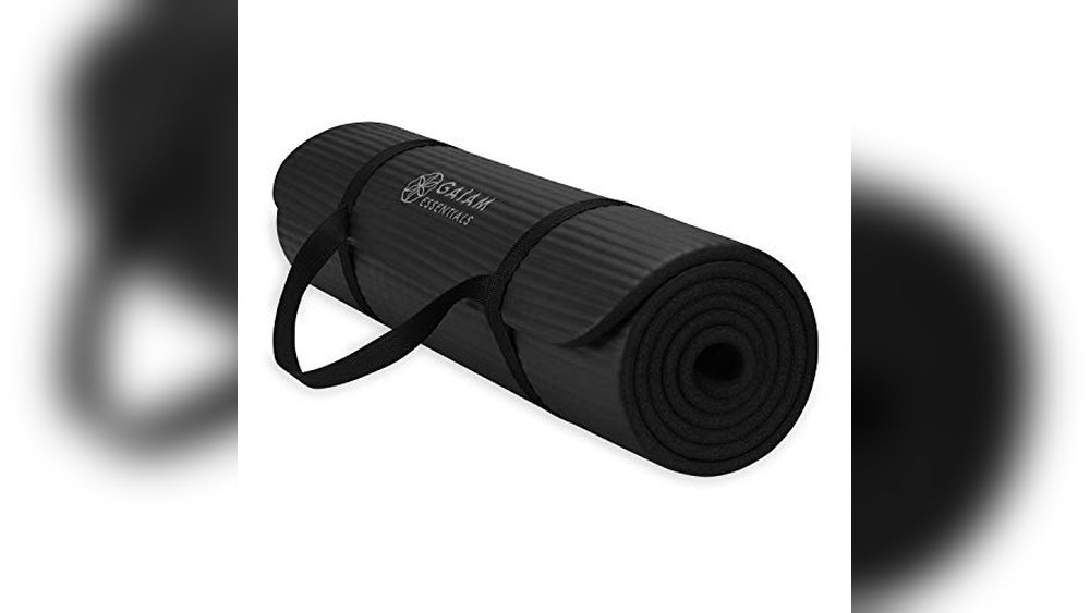 The Gaiam Essentials Thick Yoga Mat is designed with 10mm high-density foam to provide generous cushioning for joint comfort during yoga, Pilates, and other floor exercises. Its textured surface reduces slipping, making it a reliable choice for various workout routines on hard floors. The mat’s easy-cinch carrier strap adds convenience for transport and storage.