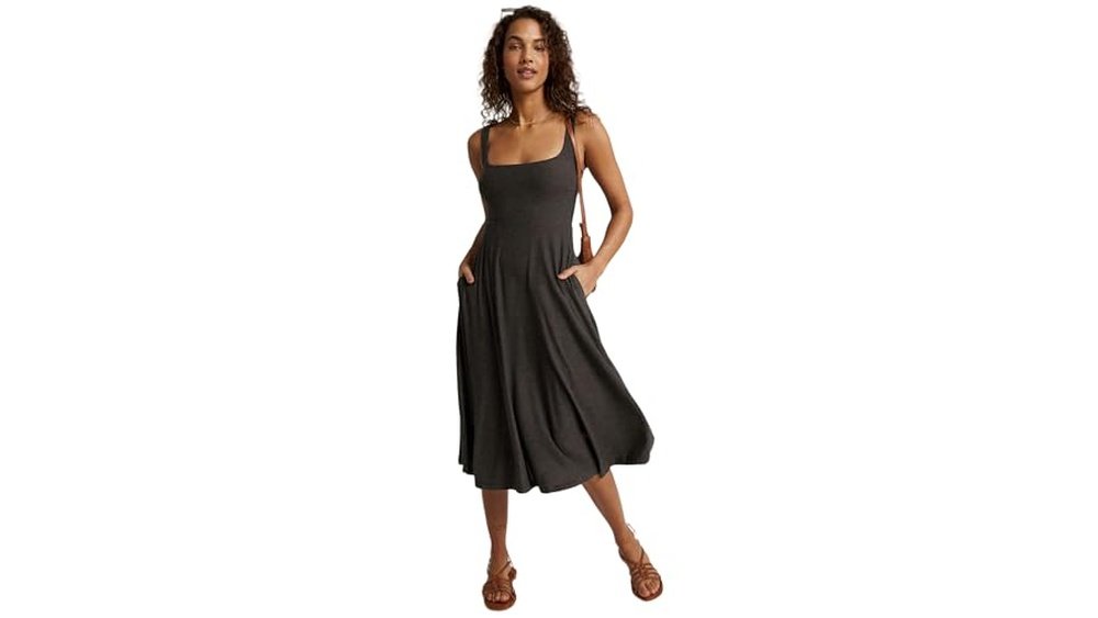 Beyond Yoga at the Ready Dress offers a lightweight and comfortable athleisure option with a flattering square neckline for everyday wear.