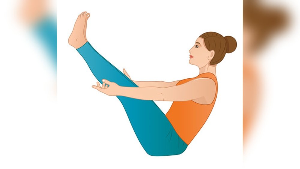 Hold the boat pose (Navasana) for 15 to 30 seconds. Gradually increase duration as your core strength improves. Rest and repeat 2-3 times.