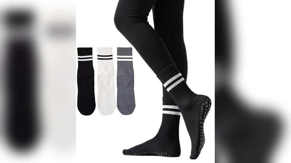 Grip socks offer traction on slippery surfaces, aiding precise movements. They support proper foot alignment, increase control, and boost performance in Pilates, barre, and other barefoot workouts.