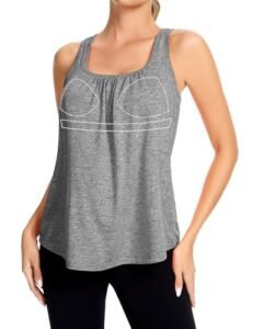 Yoga tank tops for women with built-in bras offer comfort and support during workouts. Their loose fit and breathable fabric