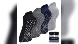Seamless grip socks for men’s yoga pants offer comfort and stability during workouts. They prevent slipping and enhance balance on