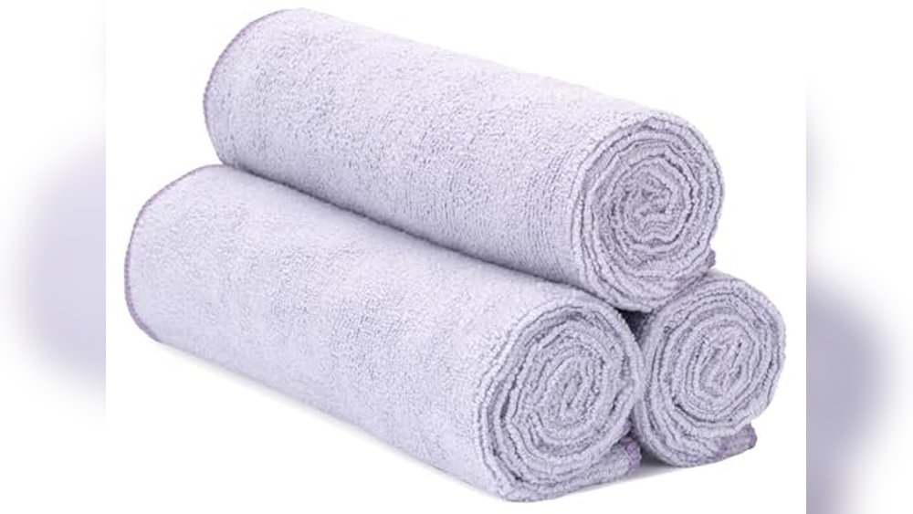 The Wuwahold Microfiber Gym Towels come as a convenient 3-pack in grey, blue, and purple colors. Each towel measures 15 by 31 inches, offering more coverage than smaller alternatives. Made from lightweight microfiber, these towels are soft to the touch and easy to carry, making them suitable for yoga, fitness workouts, swimming, and travel. They also feature a hanging loop and edge banding for durability and aesthetic appeal.